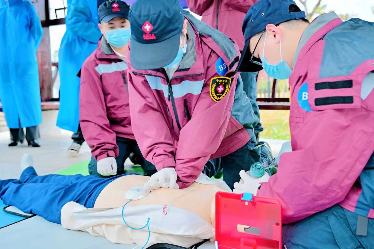 演练采用“竞赛+实战+培训”三位一体模式。首日举行的野外紧急医学救援竞赛中,参赛队伍需在负重徒步6公里的实战条件下,完成理论考核、多发性创伤处置、装备配置规范及心肺复苏四项科目。阳江市代表队凭借出色表现获团队三等奖。次日急救教学能力比武环节,阳江市代表余忠行医生在授课技能竞赛中斩获三等奖。