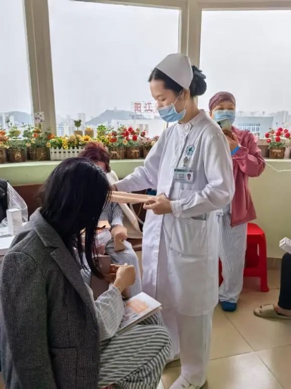淋巴水肿专科护士谢慧主管护师强调,应对淋巴水肿,预防胜于治疗。她以情景模拟的方式,从日常生活中细节说起,避免患肢提重物、采血、测量血压等日常禁忌,重视患肢的居家护理,如皮肤护理、手法淋巴引流、功能锻炼等保护措施。她还现场手把手教授患者术后自我手法淋巴引流,耐心解答患者提出的疑问,并针对个体情况给予专业的康复指导,让患者掌握更多实用的预防和管理方法,对未来的康复之路充满信心。