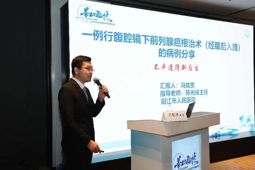 在比赛中,冯能贵医生在陈光耀主任的悉心指导下,向在场专家和同行们精彩呈现了一例局部晚期前列腺癌综合治疗案例。通过10分钟的手术视频,重点展示了泌尿外一科在经腹腹腔镜下后入路前列腺癌根治术中的关键步骤和创新技法。该手术难度极高,要求医生在精准切除肿瘤的同时,最大限度地保护患者的功能。